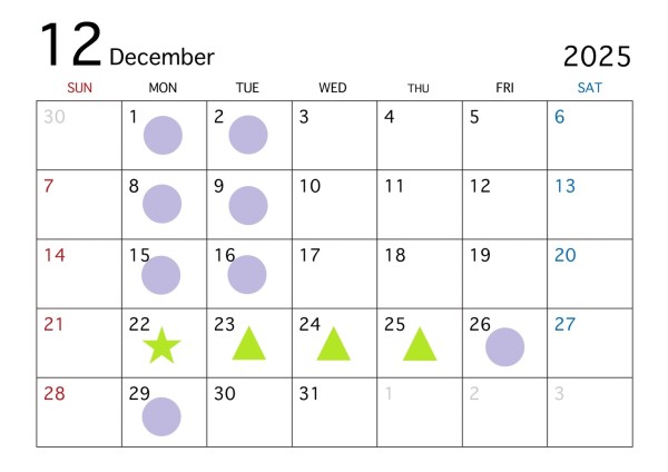 > 12月定休日のお知らせ
